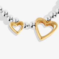 Designed with shine-bright silver-plated beads and finished with two adorable gold heart charms, this mixed-metal piece blends classic elegance with a warm, sentimental touch. The contrasting silver and gold tones make it effortlessly wearable with everyday outfits while still feeling meaningful and gift-worthy.