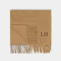 Wrap yourself in comfort with our Blanket Scarf in Camel, crafted from ultra-soft material to keep you cosy year-round. Featuring stylish frayed edges and a luxurious gold-tone logo bar, this oversized scarf adds a touch of elegance to any outfit. Whether you're treating yourself or gifting it to someone special, it's the perfect blend of warmth and style.