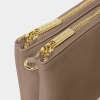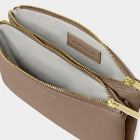 Elevate your day-to-night wardrobe with our Duo Pouch in Mocha, designed for both style and functionality. Featuring a dual-zip closure and multiple compartments, this pouch offers effortless organization with a sleek, modern touch. The discreet D-ring allows you to instantly convert it into a crossbody bag by attaching one of Katie Loxton's interchangeable bag straps, making it as versatile as it is chic.