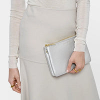 Elevate your day-to-night wardrobe with our Duo Pouch in Silver, designed for both style and functionality. Featuring a dual-zip closure and multiple compartments, this pouch offers effortless organization with a...