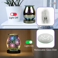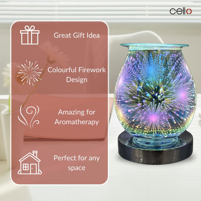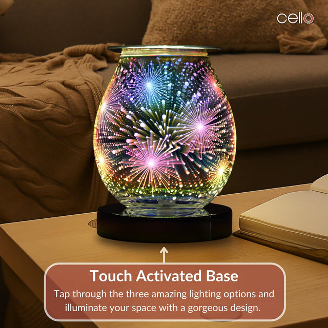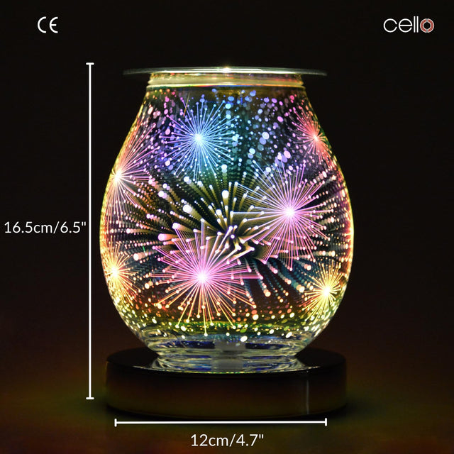 This Firework Wax Melt Burner features ‚touch technology, giving you three different light/heat levels to allow you to create your desired atmosphere. When turned on it will illuminate a stunning design of beautiful 3D fireworks, lighting up your room with colours.