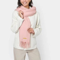 Wrap yourself in comfort with our Blanket Scarf in Dusty Rose, crafted from ultra-soft material to keep you cosy year-round. Featuring stylish frayed edges and a luxurious gold-tone logo bar, this oversized scarf adds a touch of elegance to any outfit. Whether you're treating yourself or gifting it to someone special, it's the perfect blend of warmth and style.