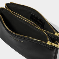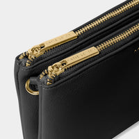 Elevate your day-to-night wardrobe with our Duo Pouch in Black, designed for both style and functionality. Featuring a dual-zip closure and multiple compartments, this pouch offers effortless organization with a sleek, modern touch. The discreet D-ring allows you to instantly convert it into a crossbody bag by attaching one of Katie Loxton's interchangeable bag straps, making it as versatile as it is chic.