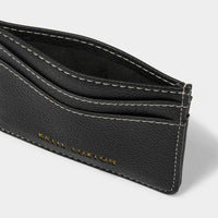 Compact yet powerful, the Perri Card Holder in Black is designed to organise your essentials with effortless style. Featuring four external card slots and a central compartment for receipts and notes, it strikes the perfect balance between function and sophistication. The chic contrast stitching and curved pocket design elevate its everyday appeal. Crafted from smooth pebble vegan leather, this card holder is both durable and stylish. Complete the look by pairing it with the Perri Crossbody, Phone Bag, and Tote for a perfectly coordinated ensemble.